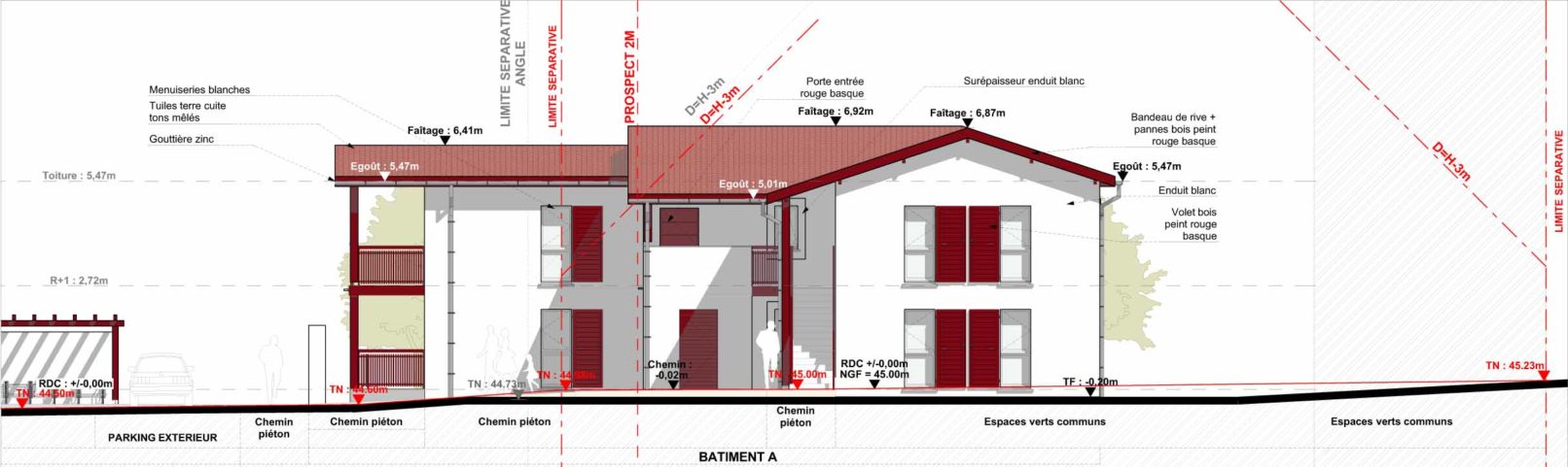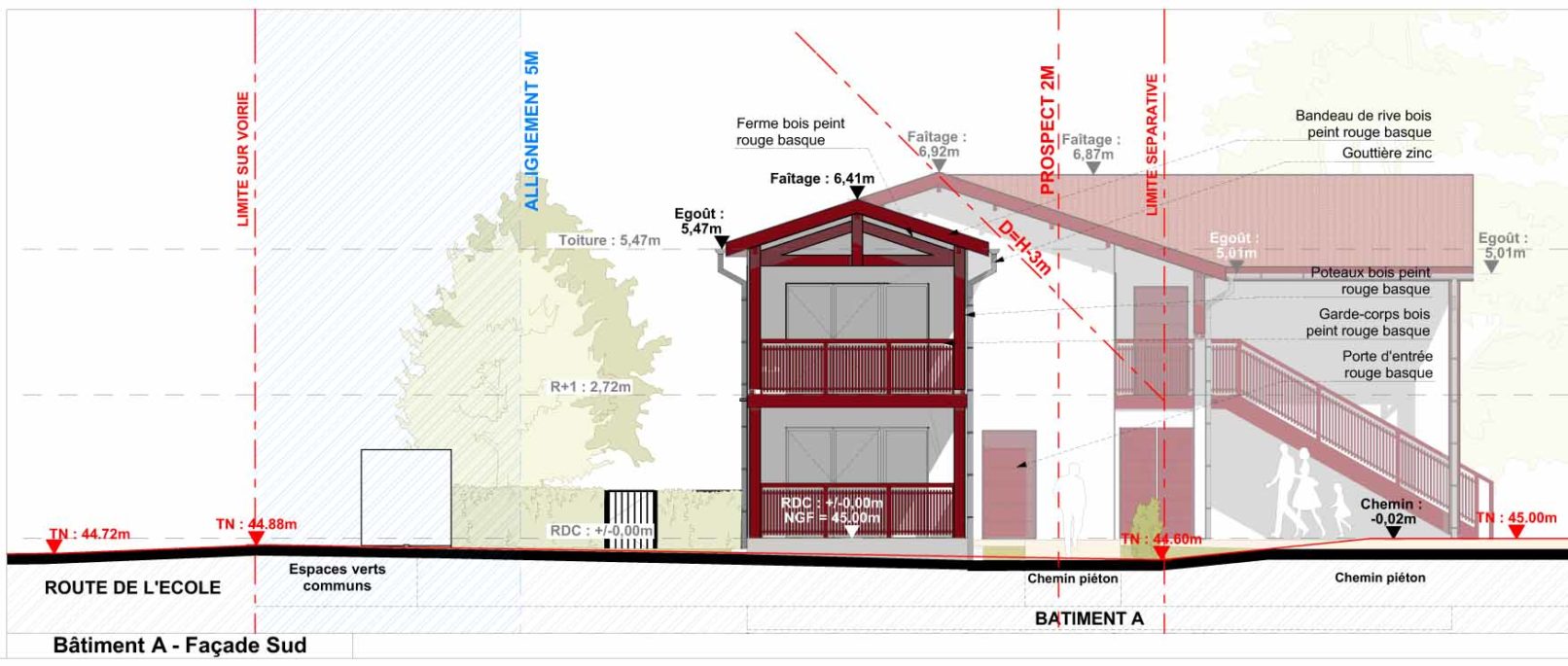 Il est composé de deux petits bâtiments de type R+1 dont l’architecture reprend celle des maisons basques traditionnelles :