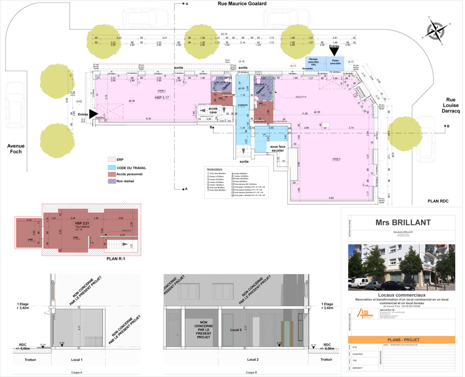 Ce projet entraîne la modification des baies vitrées, et la mise aux normes incendie et PMR.