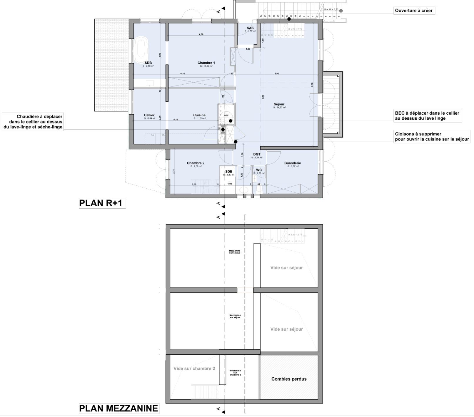 Création d’un escalier sur mesure avec rangements intégrés sous volée.